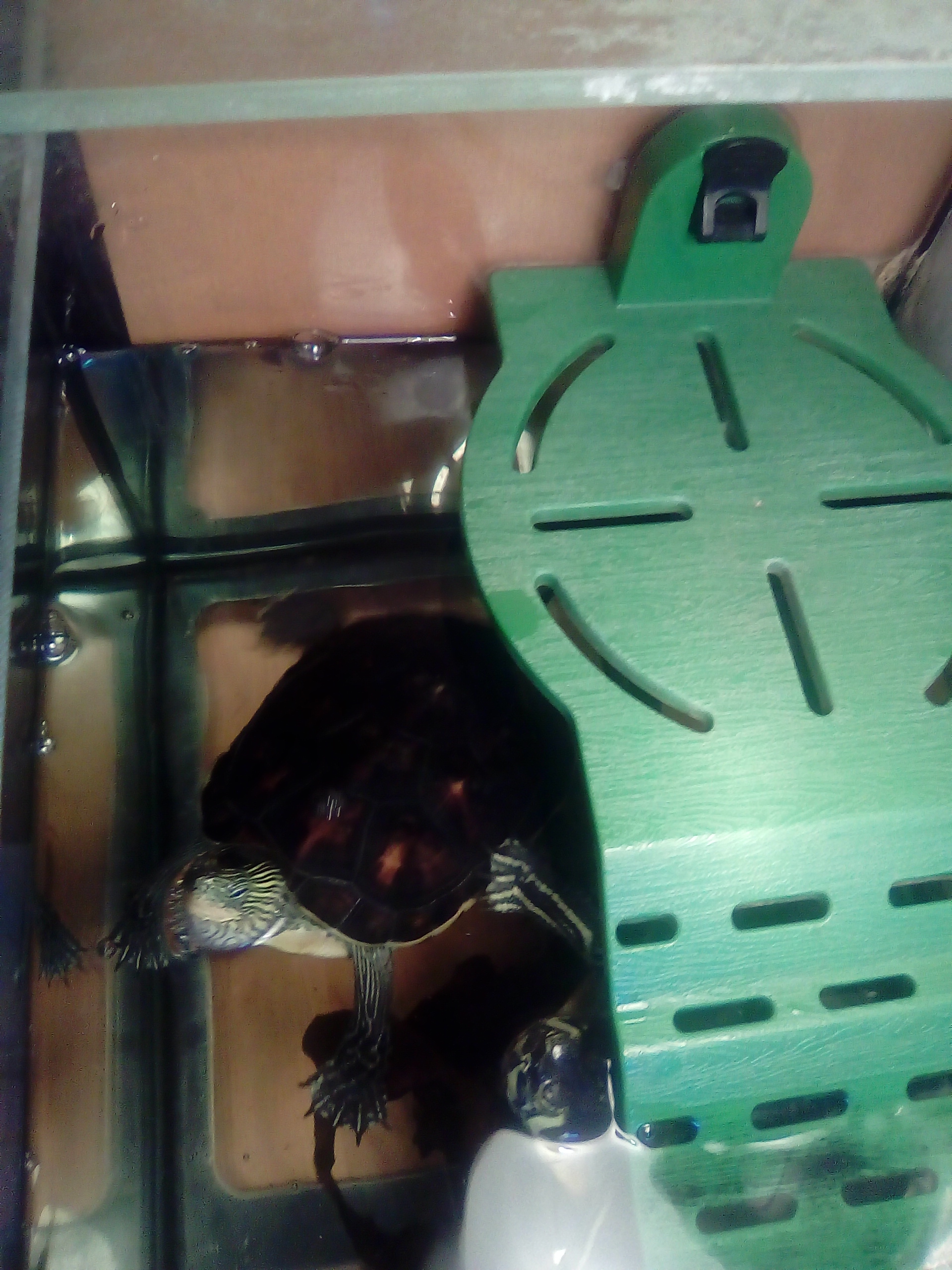 Μπορούμε να χρησιμοποιήσουμε ένα ενυδρείο για ψάρια ή να αγοράσουμε ένα ενυδρείο για χελώνες. Με ειδικά σποτ που μπορούμε να προμηθευτούμε από ένα κατάστημα ηλεκτρικών ειδών τοποθετούμε μία λάμπα με ακτίνες UVB και μία απλή λάμπα για την παροχή ζέστης στο σημείο που βγαίνει η χελώνα για να λιαστεί και να στεγνώσει.