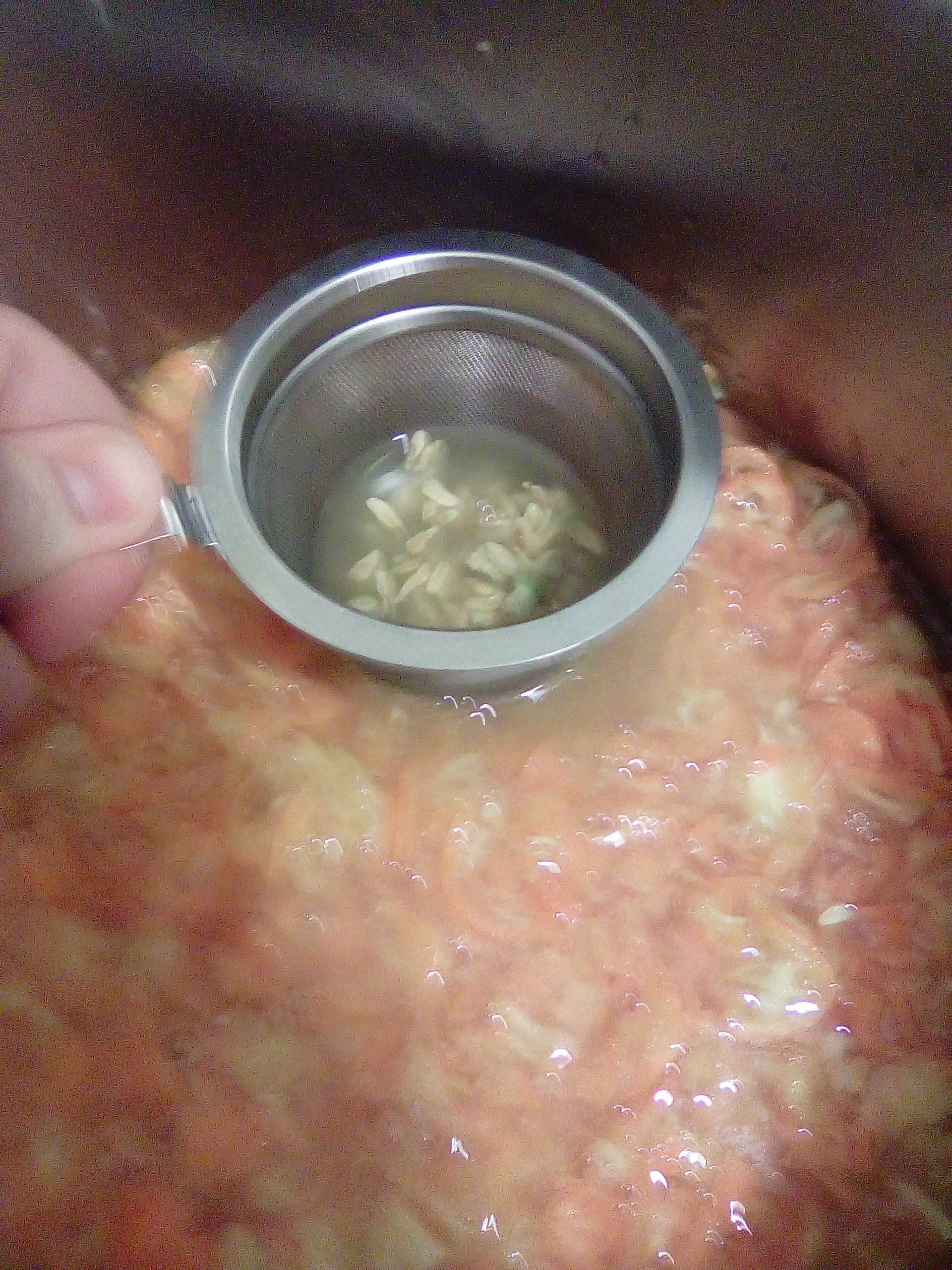 Τα κουκούτσια δεν τα πετάμε τα βάζουμε σε ένα τούλι ή σε ένα σουρωτήρι που χρησιμοποιούμε για το τσάι όπως αυτό στην παρακάτω εικόνα.