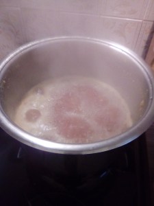 Την επόμενη μέρα αφαιρούμε το σουρωτήρι, ρίχνουμε τον χυμό του λεμονιού και σιγοβράζουμε με σκεπασμένη κατσαρόλα για 30 λεπτά.