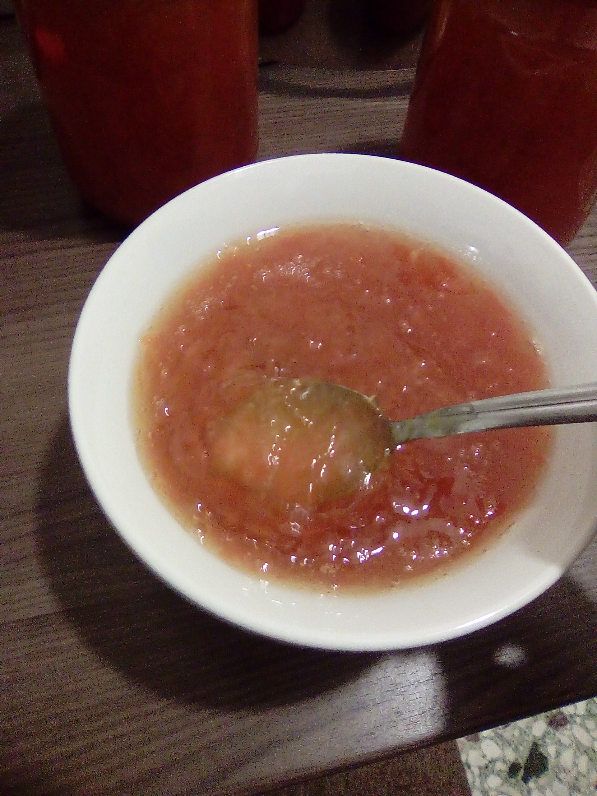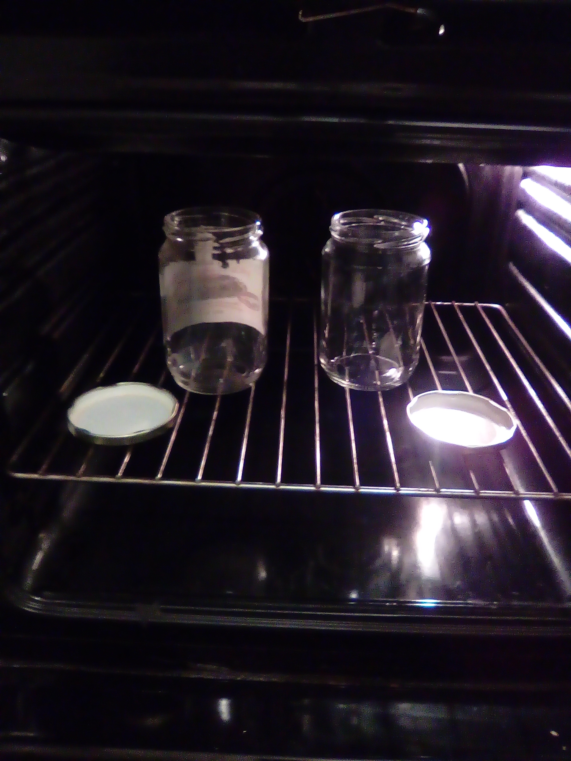 Την αποσύρουμε από την φωτιά και την αφήνουμε να κρυώσει. Στην συνέχεια αποστειρώνουμε στο φούρνο τα βάζα (για την αποστείρωση τοποθετούμε τα βάζα και τα καπάκια τους μέσα στο φούρνο για 20 λεπτά στους 60οC)
