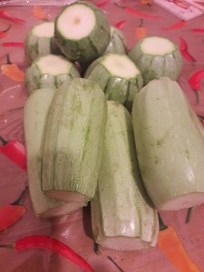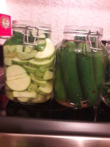 Μετά τα κόβουμε σε κομμάτια της αρεσκείας μας και τα τοποθετούμε όσο γίνεται ποιο σφικτά μέσα στα βάζα (πιέστε τα αρκετά γιατί με το πρώτο ζεμάτισμα θα μικρύνουν σε όγκο και θα χωρέσουν άνετα στα βάζα).