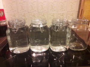 4 βάζα των 2 λίτρων (συνολικά 8 λίτρα, άρα θα χρειαστούμε τα μισά λίτρα για άλμη, 4 λίτρα)