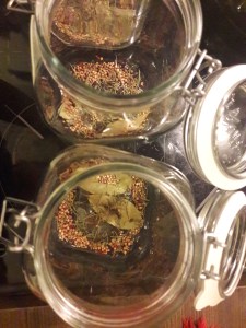 Ρίχνουμε σε κάθε βάζο τα μπαχαρικά.