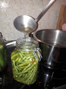 Με μια κουτάλα γεμίζουμε ξανά τα βάζα μέχρι επάνω και αφήνουμε για άλλα 10 λεπτά (με αυτόν τον τρόπο έχουμε ζεματίσει τα λαχανικά και δεν χρειάζεται όπως θα δείτε σε άλλες συνταγές να βράσουμε τα βάζα με τα λαχανικά στην κατσαρόλα).